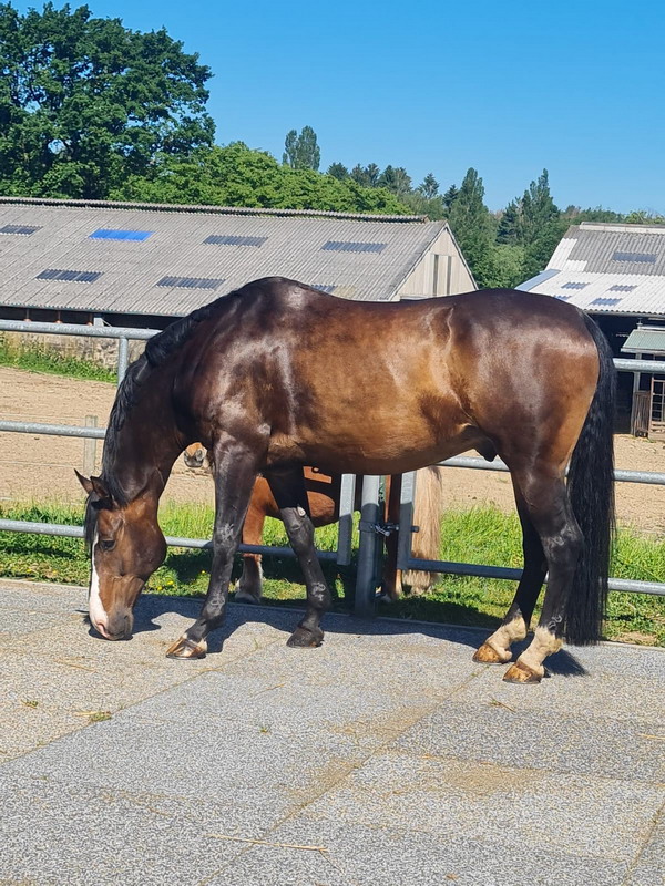 | WINNIE: würde am liebsten alles mit ihrer besten Freundin Dolly gemeinsam machen. Sie ist eine große, kräftige Stute und vielseitig einsetzbar. Die Kinder fühlen sich auf ihrem Rücken wohl und sind begeistert davon, sich die Welt einmal von so hoch oben anzusehen. Dank ihrer Statur kann Winnie aber auch problemlos von schwereren Erwachsenen geritten werden. So trägt sie im Abenteuerland zuverlässig Reiter jeder Größe durch Spieleparcours, Therapie und Reitstunde. Eine willkommene Abwechslung stellen für Winnie hierbei gemütliche Ausritte in der Gruppe dar. Und am schönsten ist es natürlich, wenn auch Dolly mit dabei ist. |